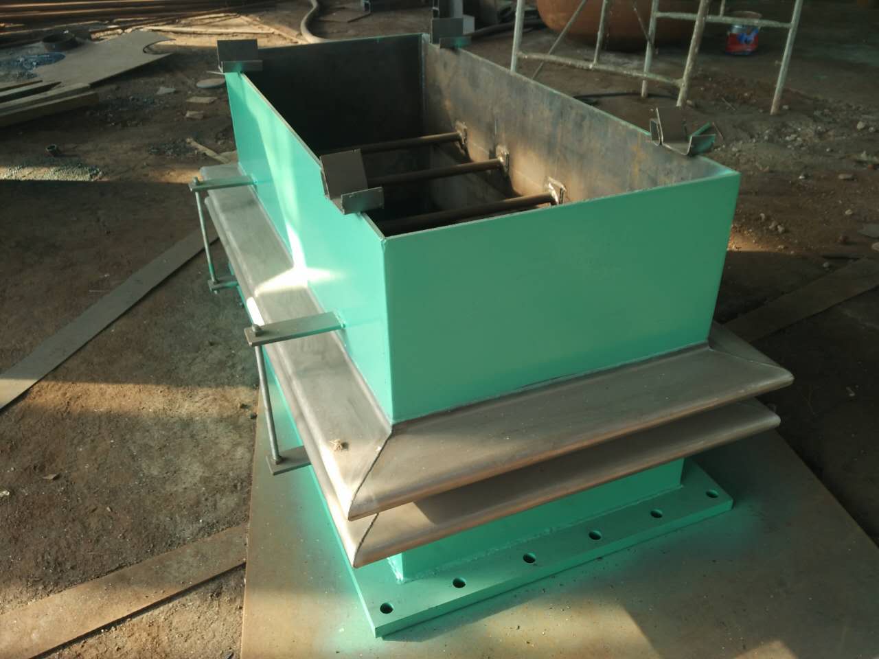 8、矩(方)形三波補償器對用于氣體介質的膨脹節(jié)及其連接管道,作水壓試驗時,要考慮充水時是否需要對膨脹節(jié)的接管加設臨時支架 以承重。