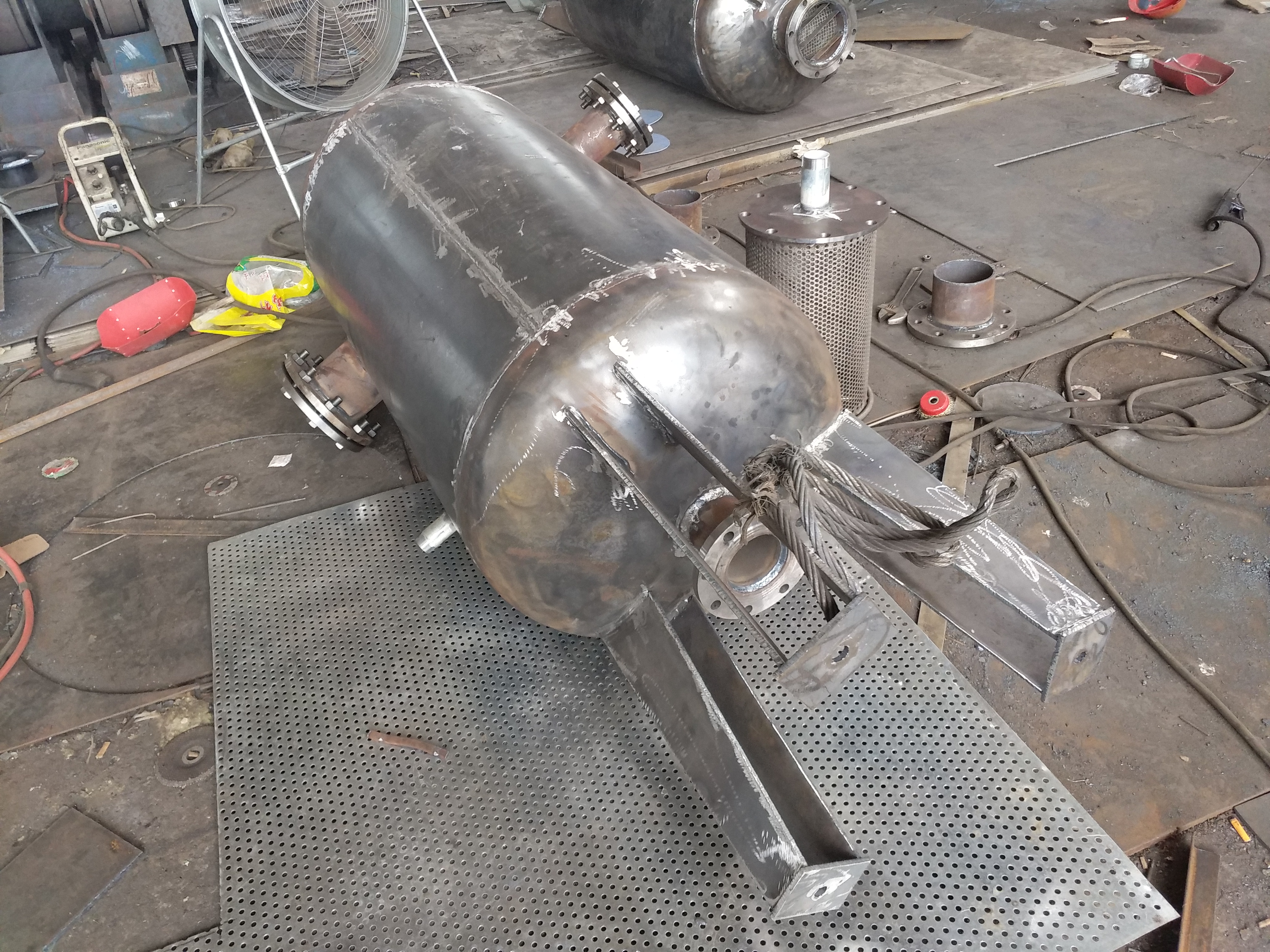 排污冷卻器是利用化學處理水或生水來冷卻排污或其它廢水的設備。減少熱量損失,同時加熱了化學處理水,提高了熱-率。也可用于冷卻或加熱水、汽介質。排污冷卻器有兩種形式:列管式排污冷卻器和表面式排污冷卻器。目-各電廠的排污水排入地溝,浪費了大量的水蒸汽及所含的熱量,如果在運行-調整不當可造成排水帶壓,引起安全隱患,-脅著電廠的安全經濟運行,為-這-問題,連云港靈動機電設備有限公司設計了排污冷卻器。